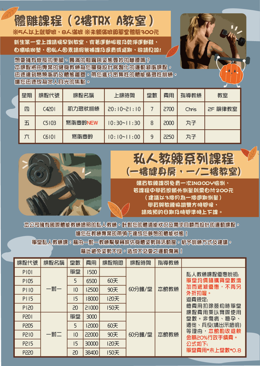 體雕、PT課程 台中港區運動公園 課程資訊11406期課程2019-09-05有氧及舞蹈課程2019-02-25瑜珈課程2019-02-25TRX課程2019-02-25飛輪課程2019-02-25球類課程2019-02-25運動課程報名需知2019-02-25