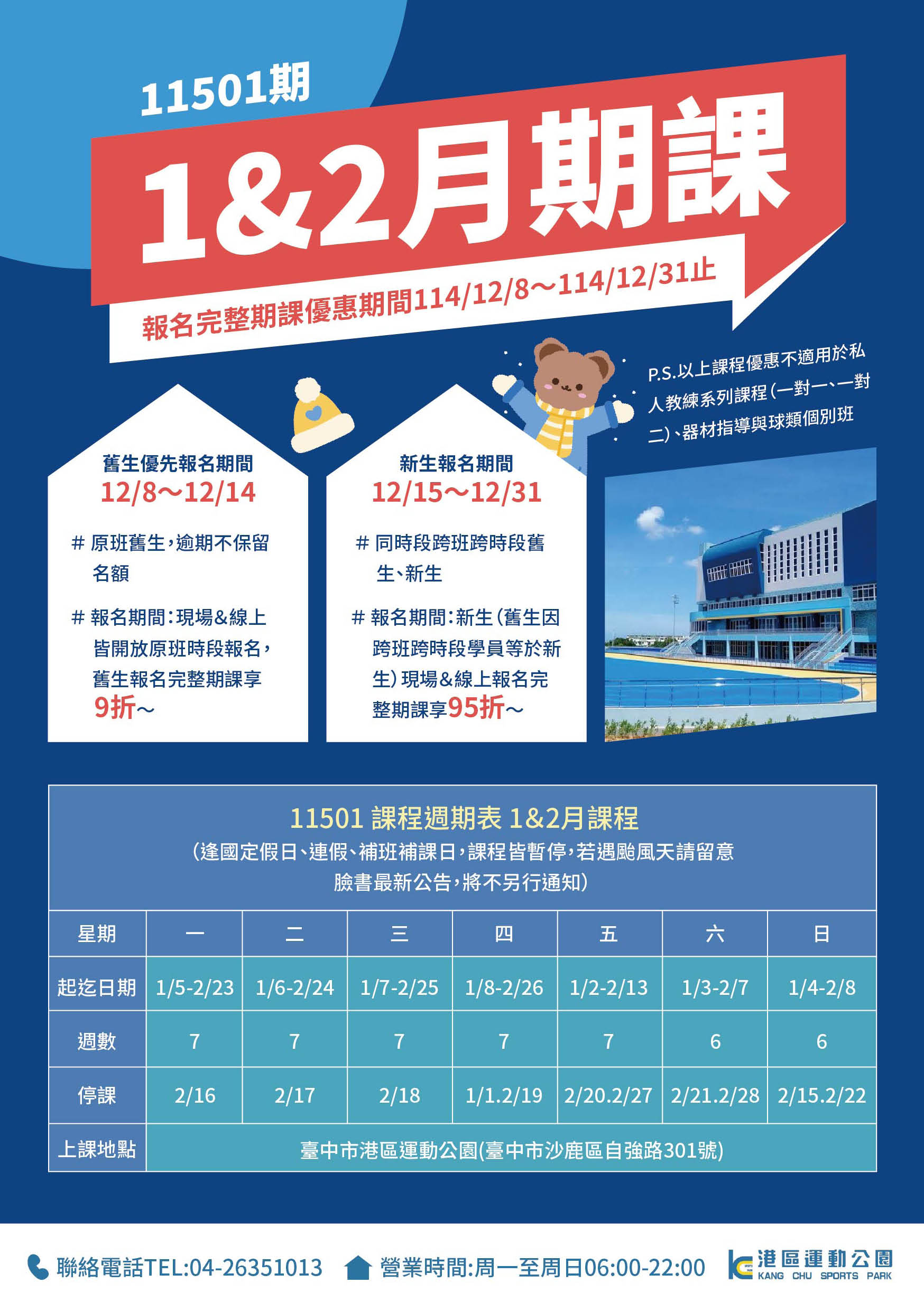 ➡ 歡迎電話詢問港區運動公園 04-26351013 ⬅